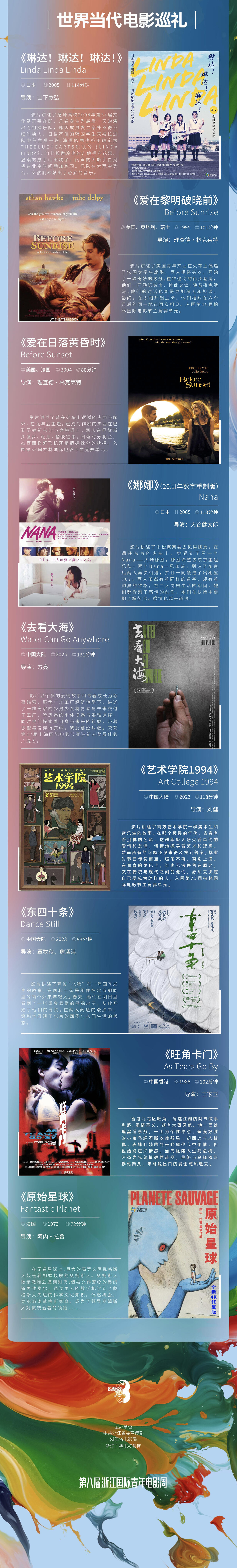 第八届浙江国际青年电影周中外影片展映活动,不仅是一场光影艺术的盛会,更是一段穿越历史与现实、对话自我与世界的心灵旅程。我们诚挚邀请您一同沉浸于多元叙事与情感交织的世界中,在欢笑、思索与感动中,借由光影的力量连接彼此,共同见证电影跨越时空的永恒魅力。