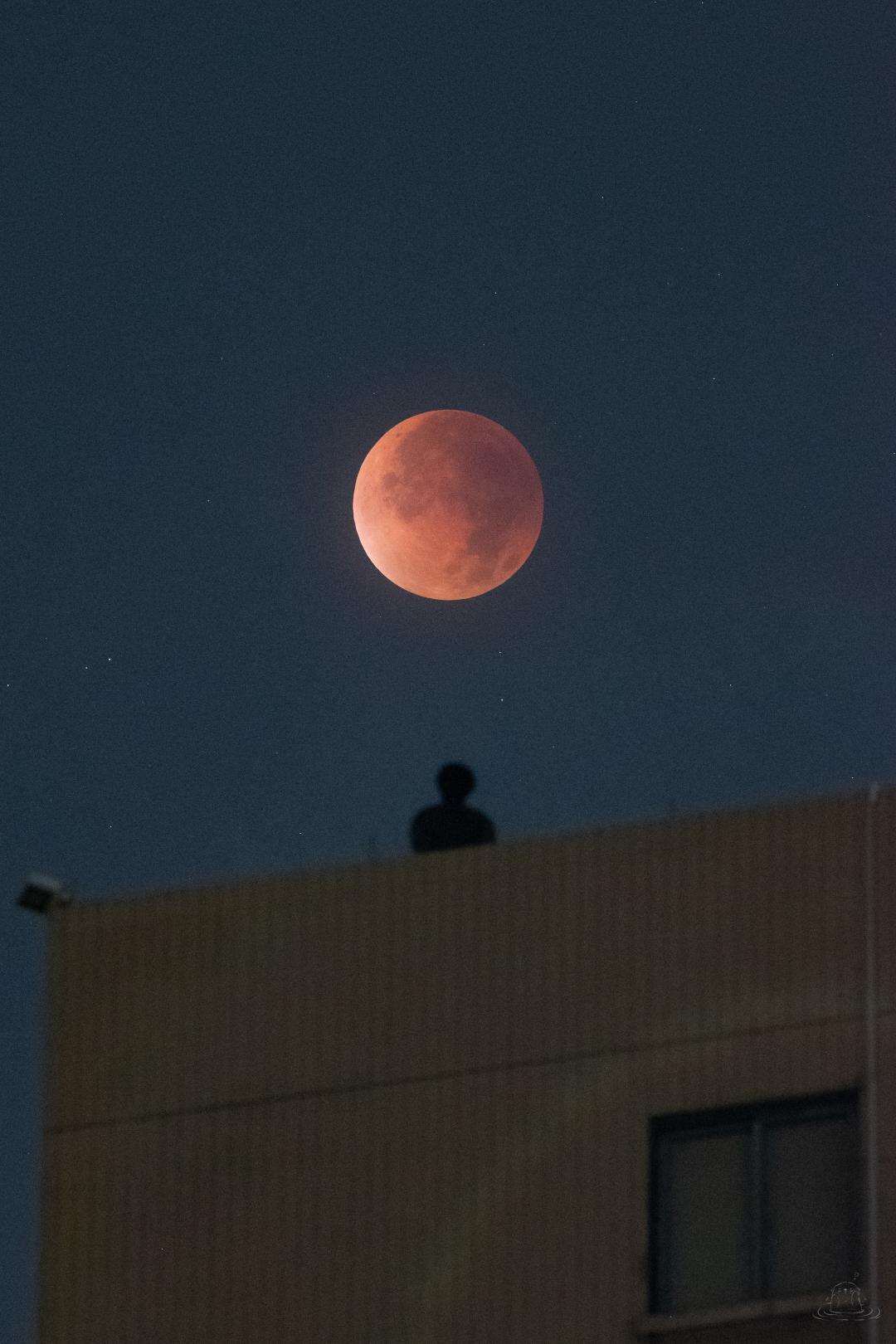 血月与人影同框。杭州市天文学会牟新翔/摄