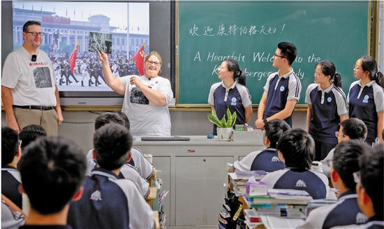 浙江在线9月11日讯(记者 于山 王璐怡 通讯员 张桂芬)10日是第41个教师节,衢州二中迎来一位特殊的老师——来自美国佛罗里达州的历史老师特雷西·戴安·康特伯格和她的丈夫威廉·罗斯·康特伯格。他们走进高一(1)班教室,分享了现场观看九三阅兵的经历和杜立特行动的历史故事。