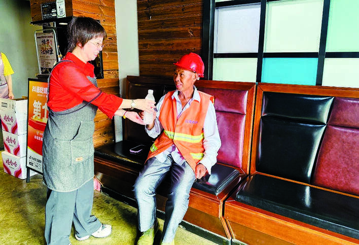 “就是多双筷子的事。”她边说边利落地烫好杯子,为刚进门的公路养护工人倒上热水。对方黝黑的脸上沁着汗珠,接过水杯时连连道谢,她只是摆摆手:“客气啥,天热,多喝点。”