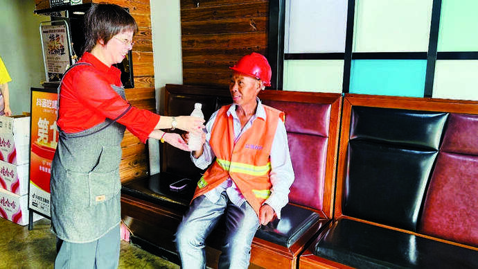 除了免费餐食,这里还是环卫工人的补水站、外卖员的歇脚处、游客的咨询点。洗手间永远对外敞开,茶水永远免费供应,餐后打包从不收费——“勤俭节约是老祖宗传下的美德,不该被收费拦着。”她笑着说。