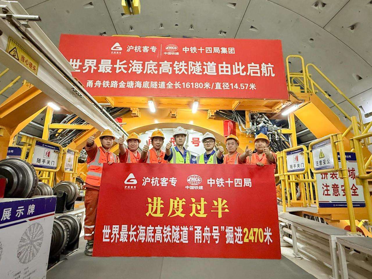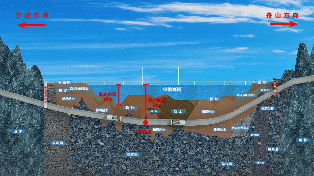 据了解,金塘海底隧道是甬舟铁路全线控制性工程,西起宁波市北仑区,东至舟山市金塘镇,全长16.18公里,其中盾构段长11.21公里,是世界最长海底高铁隧道。