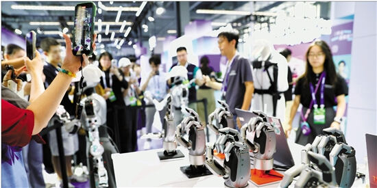 乐聚更是把一条模拟生产线搬到了现场。“我们的机器人抓取、搬运环节已在汽车行业实际生产场景中试用,后续的质检场景还在研发阶段。”乐聚机器人项目经理胡杰说,正如机械臂如今在工业生产制造场景中的普及,未来机器人也可能奔赴车间,成为生产线上的“可靠工友”。
