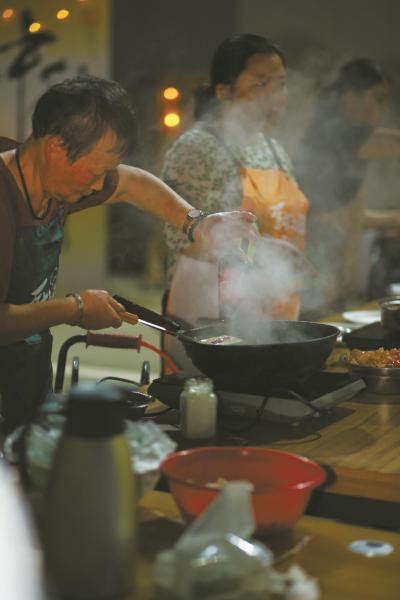 为了让饭菜更加正宗、地道,从采买到掌勺,都由生活在这里的“新戚家山人”完成。他们均来自渡头社区和五四乡帮社会服务中心志愿服务队。“我在戚家山生活了17年,但是最爱吃的还是家乡菜,今天能给工友兄弟们做几道合口的饭菜,特别开心。”老家在四川资阳的蒋维素一边颠勺,一边笑着说:“我也是在外打拼过来的,知道一口家乡菜能解多少思乡苦。”