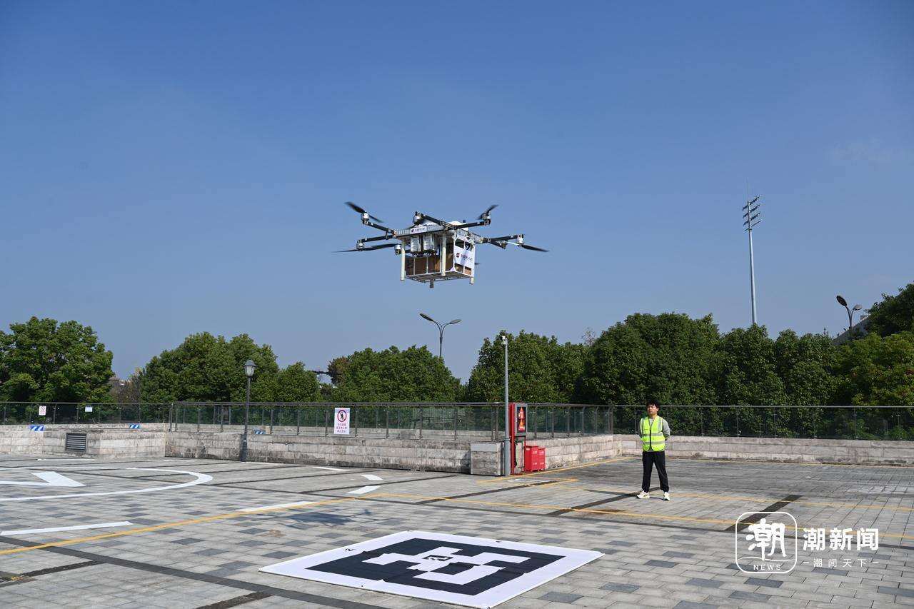 一架无人机正在梦想小镇公共起降场起飞。记者 董旭明摄