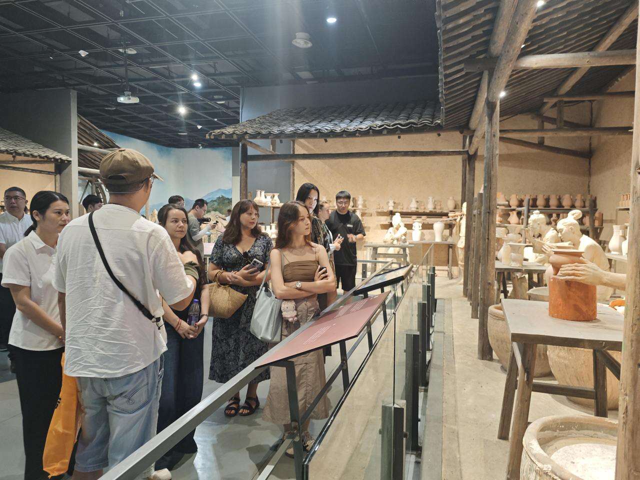9月27日上午,国际友人们首站抵达龙泉青瓷博物馆,沿着龙窑造型的过道徐徐前行。透过南朝至清代的青瓷标本、五代莲瓣纹香炉残片、南宋粉青釉龙瓶等珍贵文物,深入了解龙泉窑跨越1600年的兴衰脉络与艺术高度。