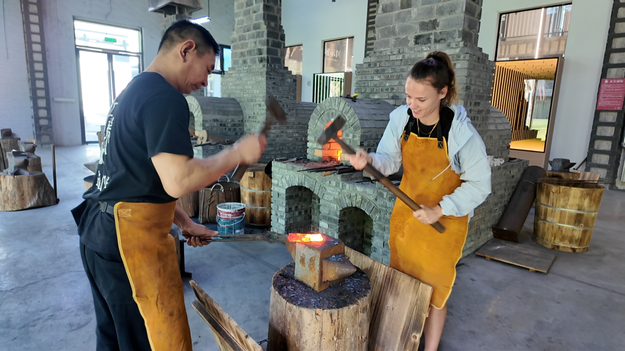 她体验过宝剑锻打以后非常兴奋:“如此接近铁花飞溅的火爆场面,不仅带来令人难忘的肾上腺素飙升体验,更让我体会到,艰苦的工作能让人始终保持热情。”