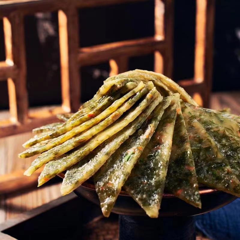 苍南霞关海苔饼 秋日傍晚,来一个霞关海苔饼作为点心,再合适不过。霞关海苔饼纯手工制作,选用新鲜海苔、牡蛎、特色虾皮、红薯粉、胡萝卜、鸡蛋等食材制作而成,独具苍南风味。刚出炉的霞关海苔饼,外焦脆内醇厚,虾与海苔鲜甜浓郁,满口生香。