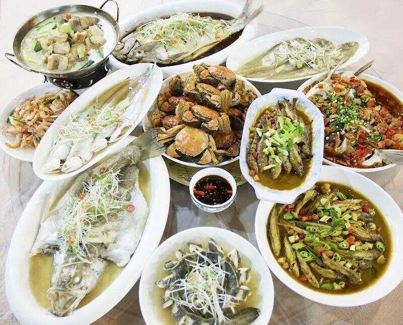 富春江江鲜 富春江富阳流域生长着多达120个品种的富春江鲜,一直以来江鲜都是富阳人难忘的舌尖记忆。在富春江江鲜大会的永久举办地——场口东梓关,10余家江鲜馆沿富春江分布,所用的江鲜食材,都是渔民从富春江捕捞上岸后直接新鲜上桌。江鲜大会的“拳头产品”、当地最出名的菜品,就是由清蒸白鲈、葱油鳊鱼、鮰鱼锅仔、盐水江虾、清蒸刀鱼、剁椒鱼头、清蒸江鳗、清蒸舌鳎鱼、富春江大闸蟹、红烧船丁鱼、红烧石斑鱼、上汤黄蚬螺蛳等组成的“富春江十二鲜”。游客可在江边绿道骑游或徒步,赏江景,吃江鲜,何等惬意。