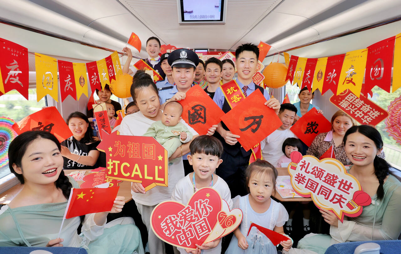 杭州客运段在列车上开展迎国庆中秋文化活动。 周围 摄