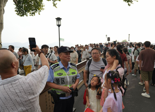 从警二十年,也服务了断桥二十年的景区公安岳庙派出所民警陈宗耀,迎来了他退休前最后一班的国庆岗。