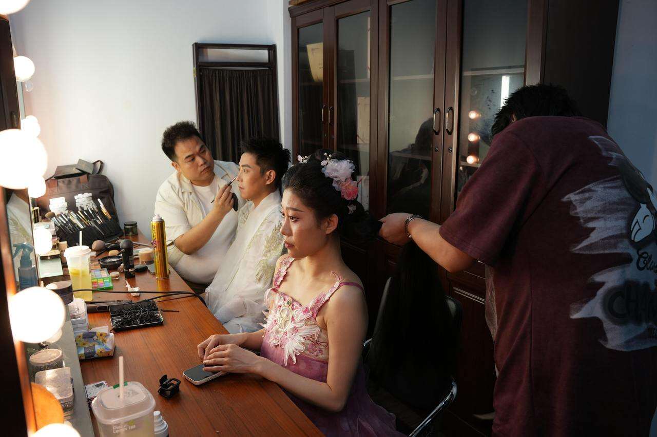 吉林省歌舞团的化妆师在给主播化妆。受访者供图