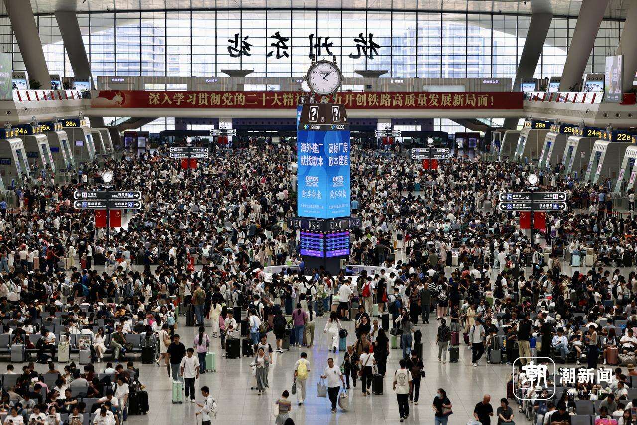 10月8日,国庆中秋假期最后一天,大量市民游客踏上归途,杭州东站也迎来了客流高峰。据中国铁路上海局集团有限公司消息,长三角铁路迎来返程客流最高峰,今天预计发送旅客370万人次。记者 俞碧寅 摄