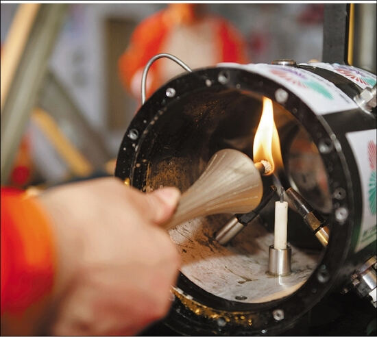 “5,4,3,2,1——开始采火!”随着控制室内一声令下,操控室指挥长按下红色按钮,安装在甲板上的太阳能板产生的电流经光电复合缆传送至海底,燃烧室中的引燃棒开始加热。