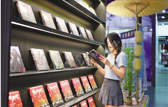 2025中国国际网络文学周上,参观者正翻阅网文书籍。 记者 魏志阳 朱海伟 摄