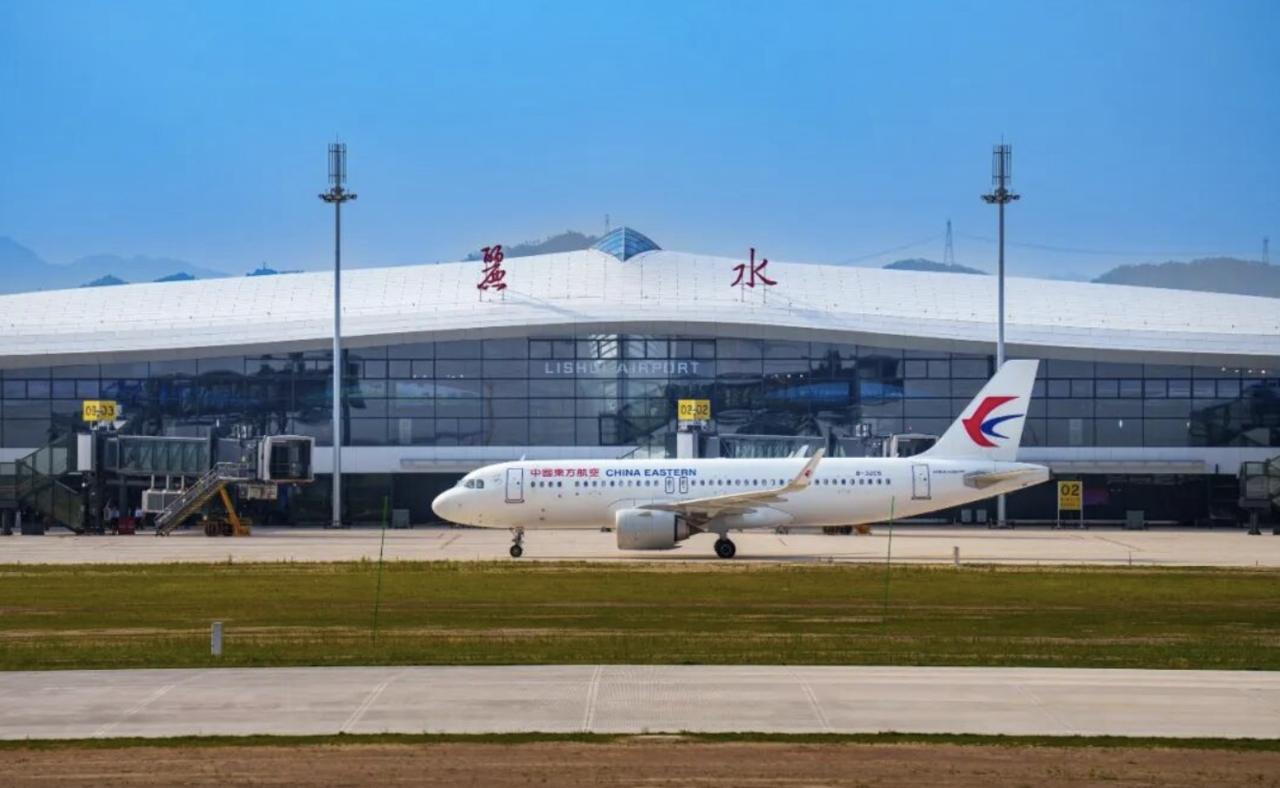 丽水机场,飞机载着游客飞越群山。图源 丽水机场