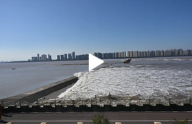 下午2点40左右,江面远处一道银白潮线疾驰而来,人群中爆发出阵阵惊叹,无数手机、相机齐举,记录这壮阔瞬间。张先生激动地表示,“等待两三个小时只为了看这5分钟,很震撼、很值得!”