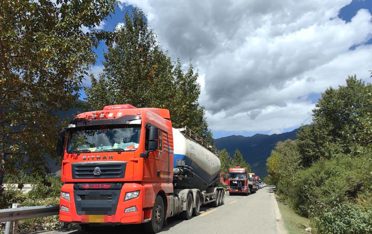 行驶在林芝派镇的重卡。甘居鹏 摄