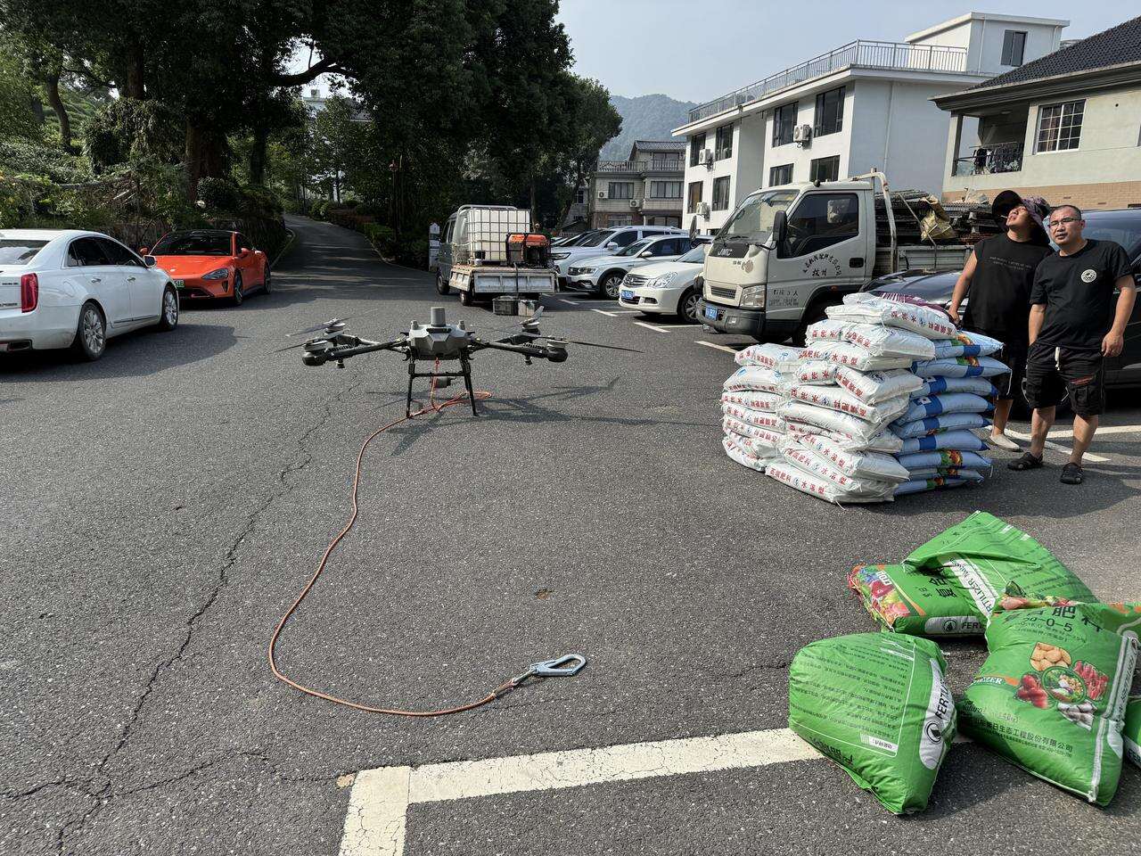 “我们一开始是自家用无人机运肥料,后来为了方便大家就拿出来共享,只收个成本费。”杭州孝林茶叶专业合作社的谭国华是提供无人机服务的飞手之一,他告诉记者,无人机单次最多可运输130斤左右的菜籽饼上山,来回只需两三分钟,单日运输量最高可达7.5吨,目前已服务一百多户村民。