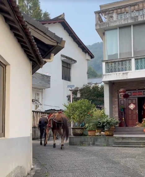 在龙井村,骡子是七八年前开始进村的。如今,两个人、四头骡子组成一个队伍,专门帮村里人搬运茶叶施肥的肥料。
