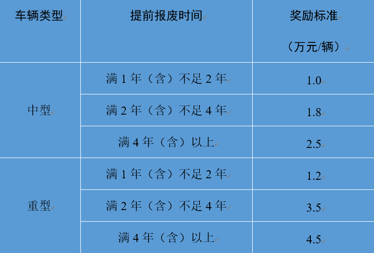 实施细则的奖励分别为提前淘汰奖励和新购奖励。