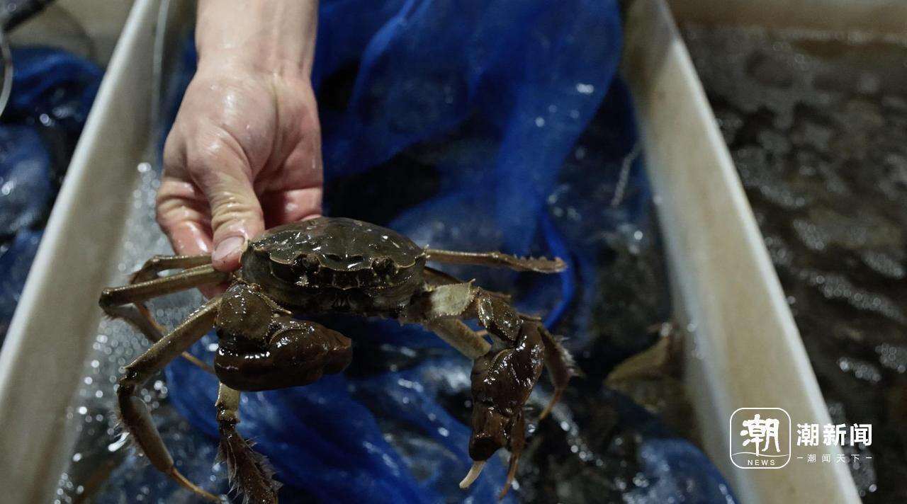 刘师傅为记者展示大闸蟹。记者 于诗奇 摄
