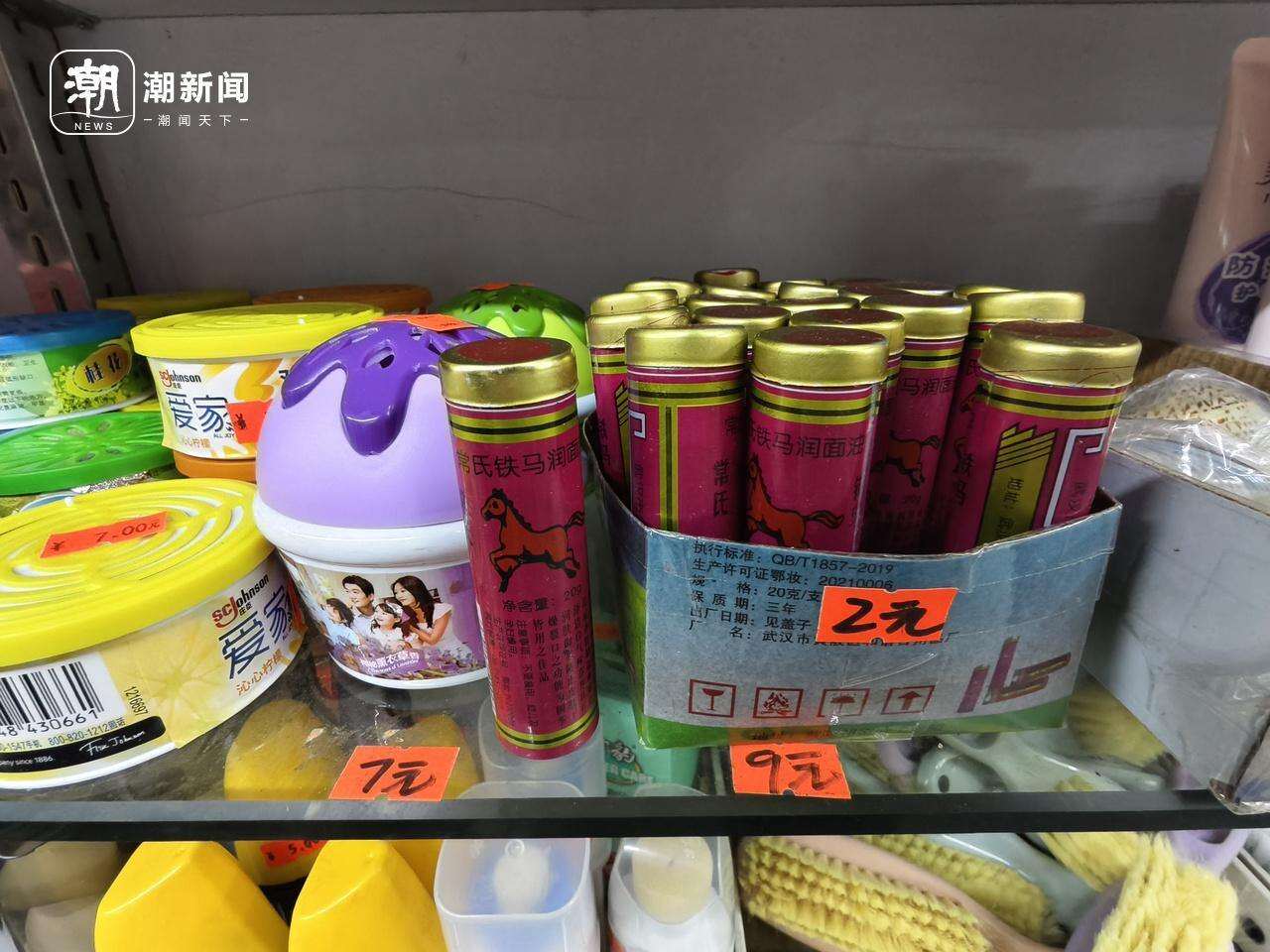 不过,货架上也有不少小物件还维持着2元的定价,像粉色的润面油,黑色一字夹,塑料刷子,这些90年代热销的商品,让人仿佛回到了旧时光。