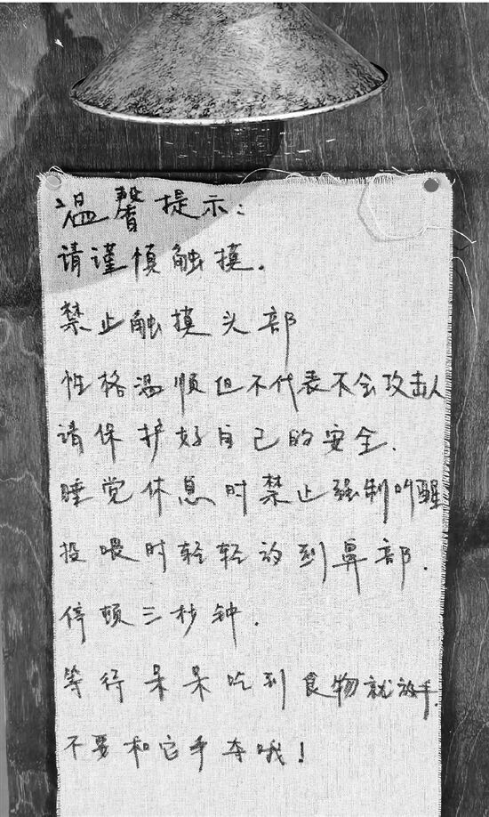 树懒咖啡店有一块提示牌:“请谨慎触摸,禁止触摸头部,性格温顺但不代表不会攻击人。”
