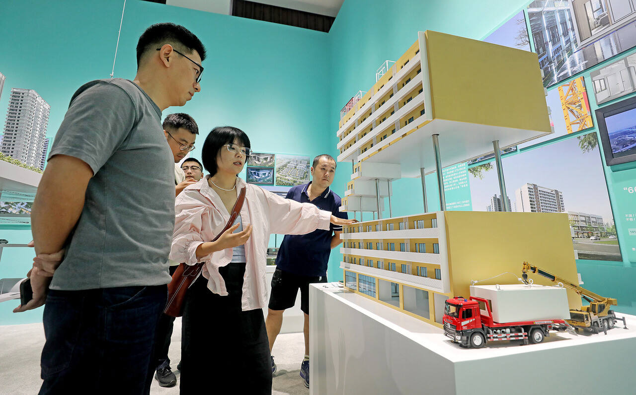 参观者在了解模块化集成建筑技术。 记者 林云龙 摄