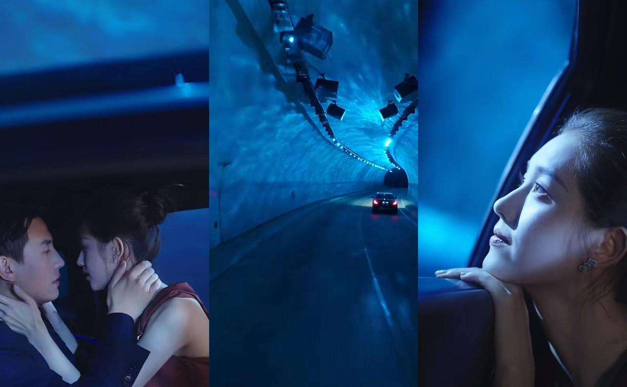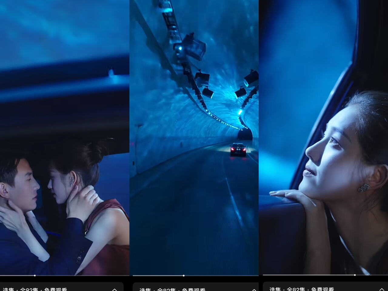 这个隧道在短剧中出现了三次,从最初的暖黄色调,到接吻时的波光粼粼,再到后期两人嬉笑打闹的海洋蓝色,光线和色彩之变具象化了人物内心的起伏变迁。当影像与情感深度交织,便让观众对画面念念不忘。