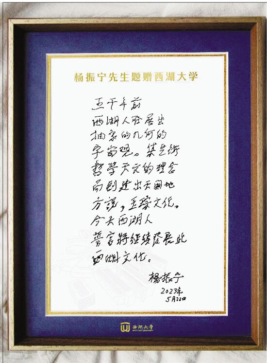 杨振宁2023年曾题赠西湖大学。西湖大学供图