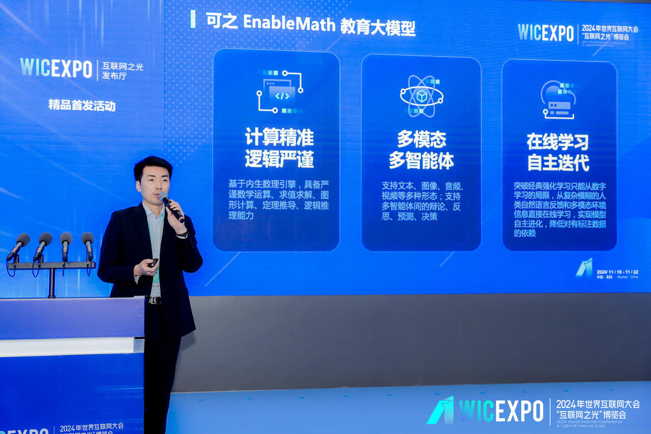 2023年,可之科技在“直通乌镇”全球互联网大赛斩获大赛特等奖、大模型和数字人赛道第一名;2024年,其“EnableMath教育大模型”成功入选当年“互联网之光”博览会十大首发成果。“通过世界互联网大会乌镇峰会,我们获得了业界认可,也得到了互鉴、提升的机会,很期待与乌镇下一次相聚的时刻。”