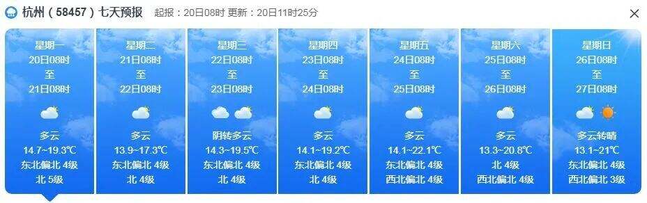 今明两天,杭州的云层依然较厚,偶尔还会飘下一些阵雨。不过随着干燥的冷空气持续渗透,从后天开始,云层渐薄,晴好天气逐渐回归,真正秋高气爽的日子来了。