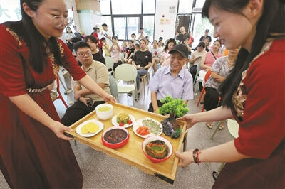 活动现场,“孝”文化特色菜、重阳套餐、步步登高黄金套餐等系列佳肴错落摆放。此次竞赛的评委阵容除了餐饮界专业评委外,更多是由社区居民与小学生组成,他们细细品尝,用最直观的感受评选美味。