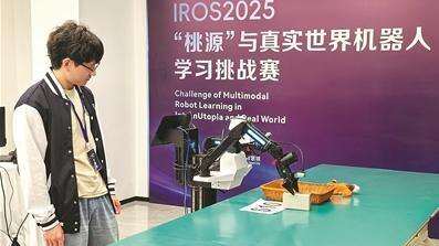在操作区,机器人正小心翼翼地夹起一串葡萄,精准投入篮中;在导航区,另一台机器人自如穿行,从客厅走到厨房……两个场景背后,正是14支具身智能队伍在激烈角逐。10月19日在钱塘智慧城的杭州智能机器人产业园,IROS 2025“桃源”与真实世界机器人学习挑战赛线下总决赛举行。这场聚焦“仿真到现实”的科技赛事,正为人工智能融入实体场景写下生动注脚。