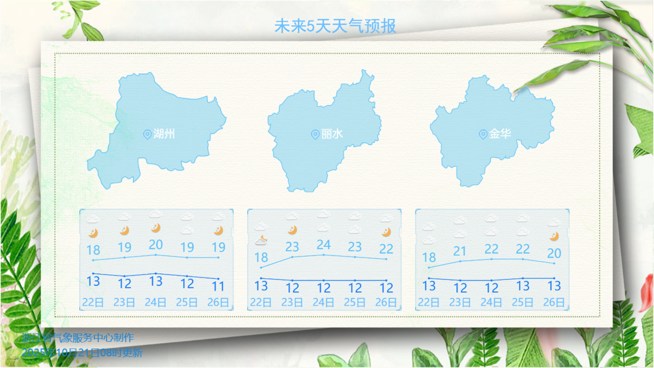 据预报,最近三天浙江省多地的气温还将继续下探,刷新下半年来新低。而且因为这次冷空气属于“干冷型”,它的东移南下不仅会带来降温也会挤走水汽,赶跑阴雨天气。今天,浙南和沿海地区阴天偶有小雨,其他地区阴到多云。明天开始,天况明显转好,全省将迎来一段秋高气爽的天气。