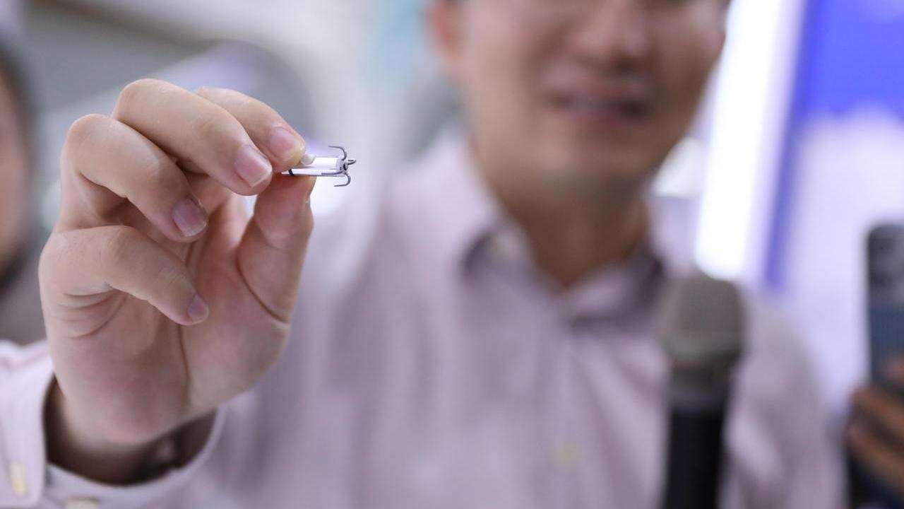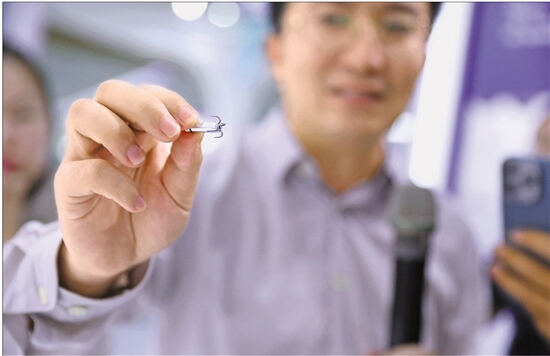 图为经导管植入式无导线起搏系统,这是全球最小的心脏起搏器。 新华社发