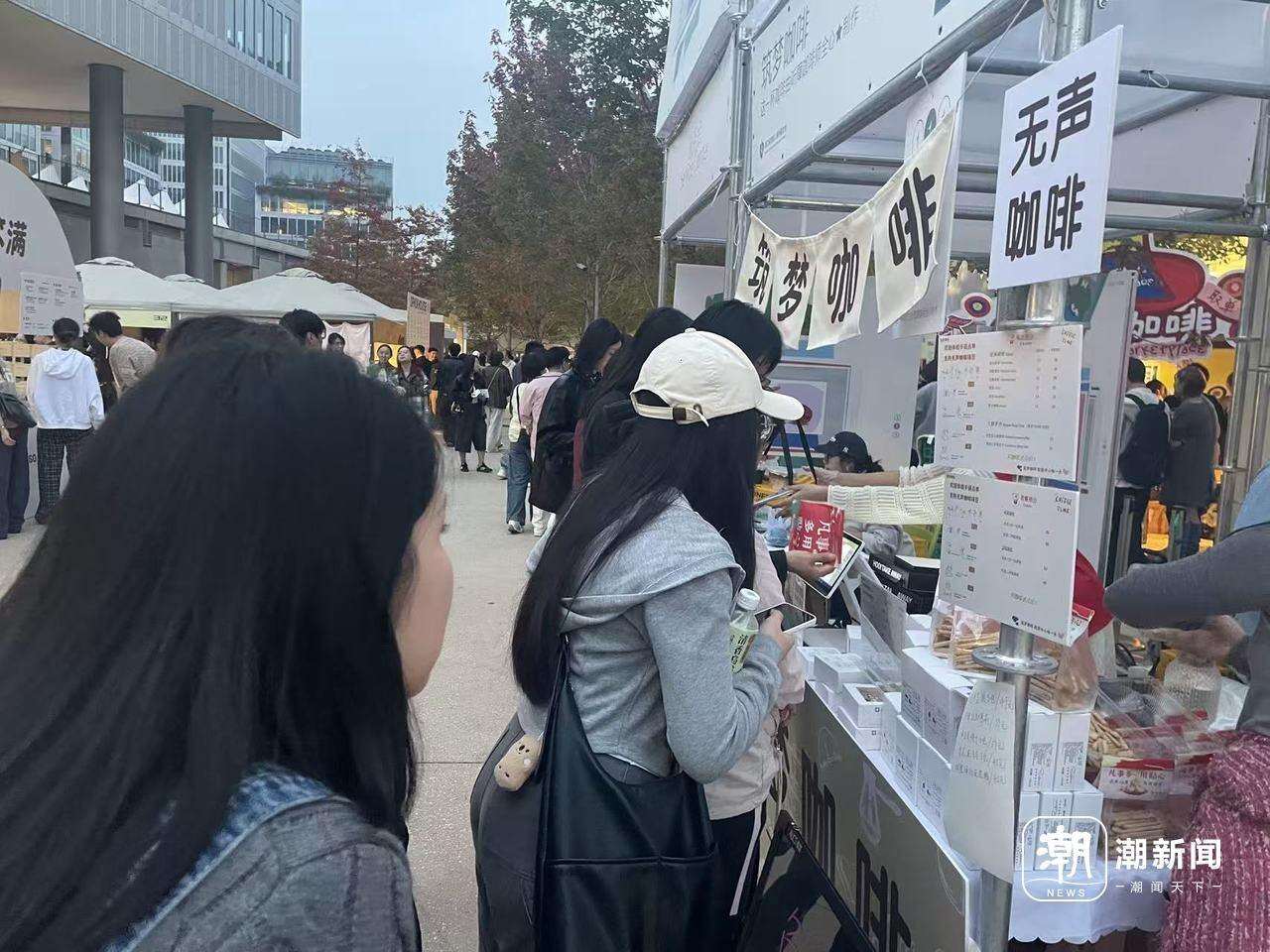 潮新闻记者注意到,有小部分客人在这里点单,是因为入口,想端了咖啡慢慢逛,大多数客人选择这家是看到展板,出于善意愿意停留,用行动支持他们。