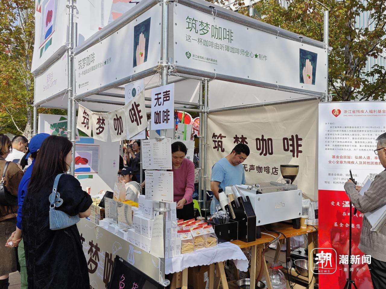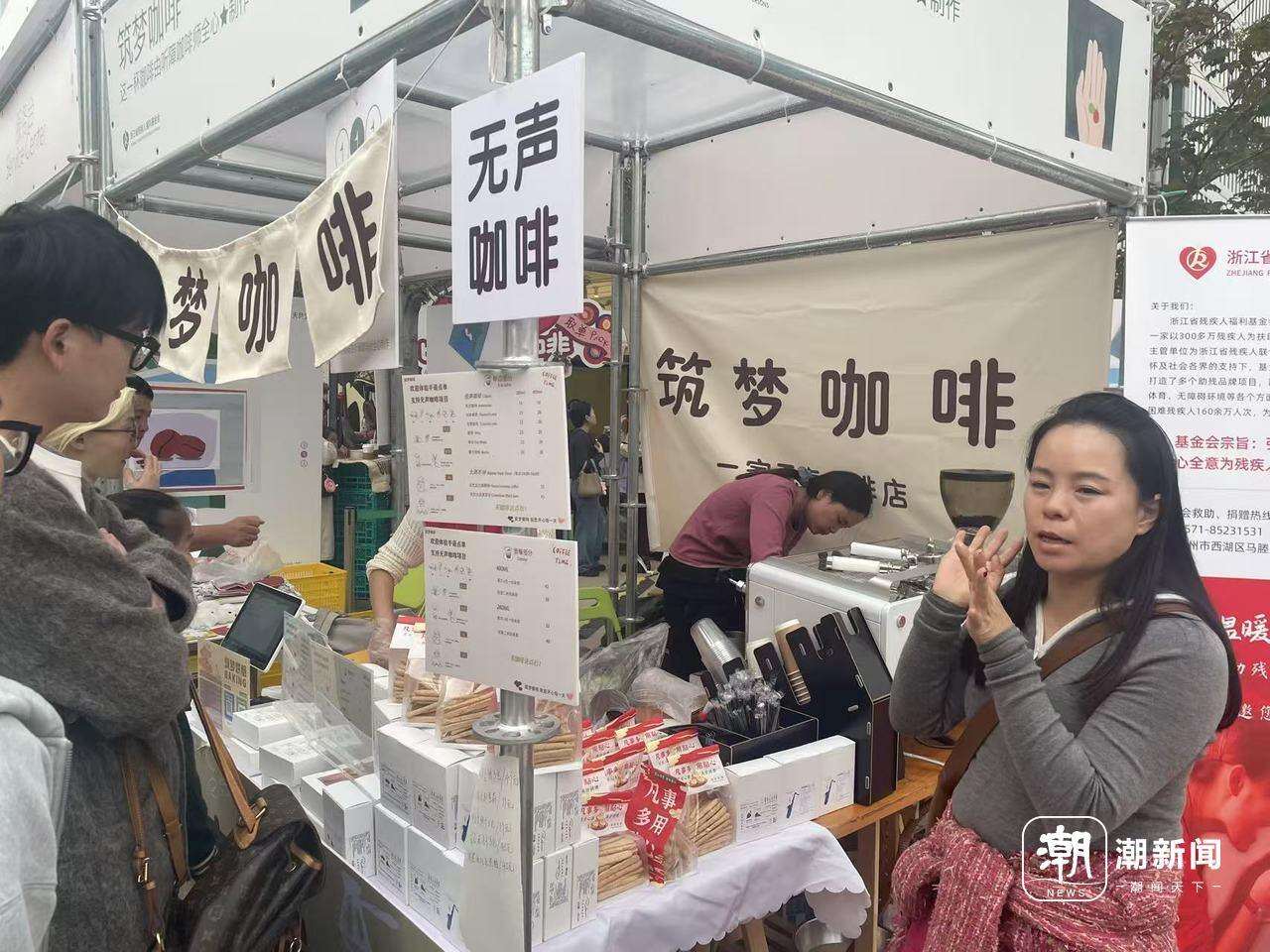 作为古荡街道打造“家门口的文艺市集”的重要举措,本次咖啡节汇聚了成都、上海、南京等地的“排队王”品牌及海外首次亮相杭州的精品门店,一半以上品牌为杭州首秀。潮新闻记者注意到,其中入口一家咖啡馆的摊位前常常排起长队。那么多选择中,为何“啡”它不可?因为这是一家无声咖啡馆,每一杯咖啡都是由听障咖啡师用心制作的。杭州人用善意力挺这些身残志坚的年轻人,“不着急,我们可以等。”