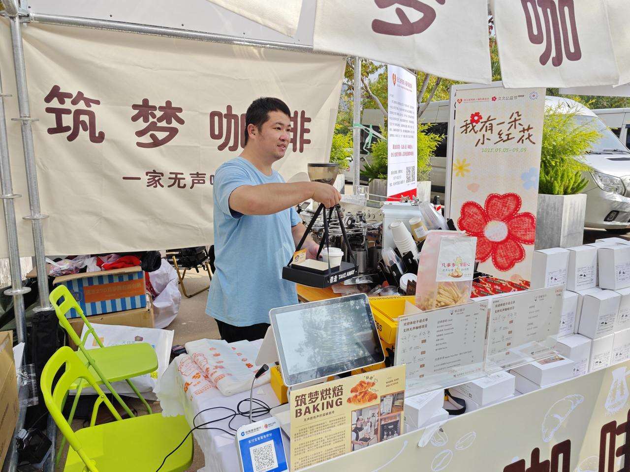 爱如潮水,第三届天目里咖啡节现场最“安静”的角落,收获了最大的善意。小辉笑着说,没有想到过会来这么多人。今天忙,走不开。明天如果有时间,不忙的时候会去其他摊位学习,必须要学习。