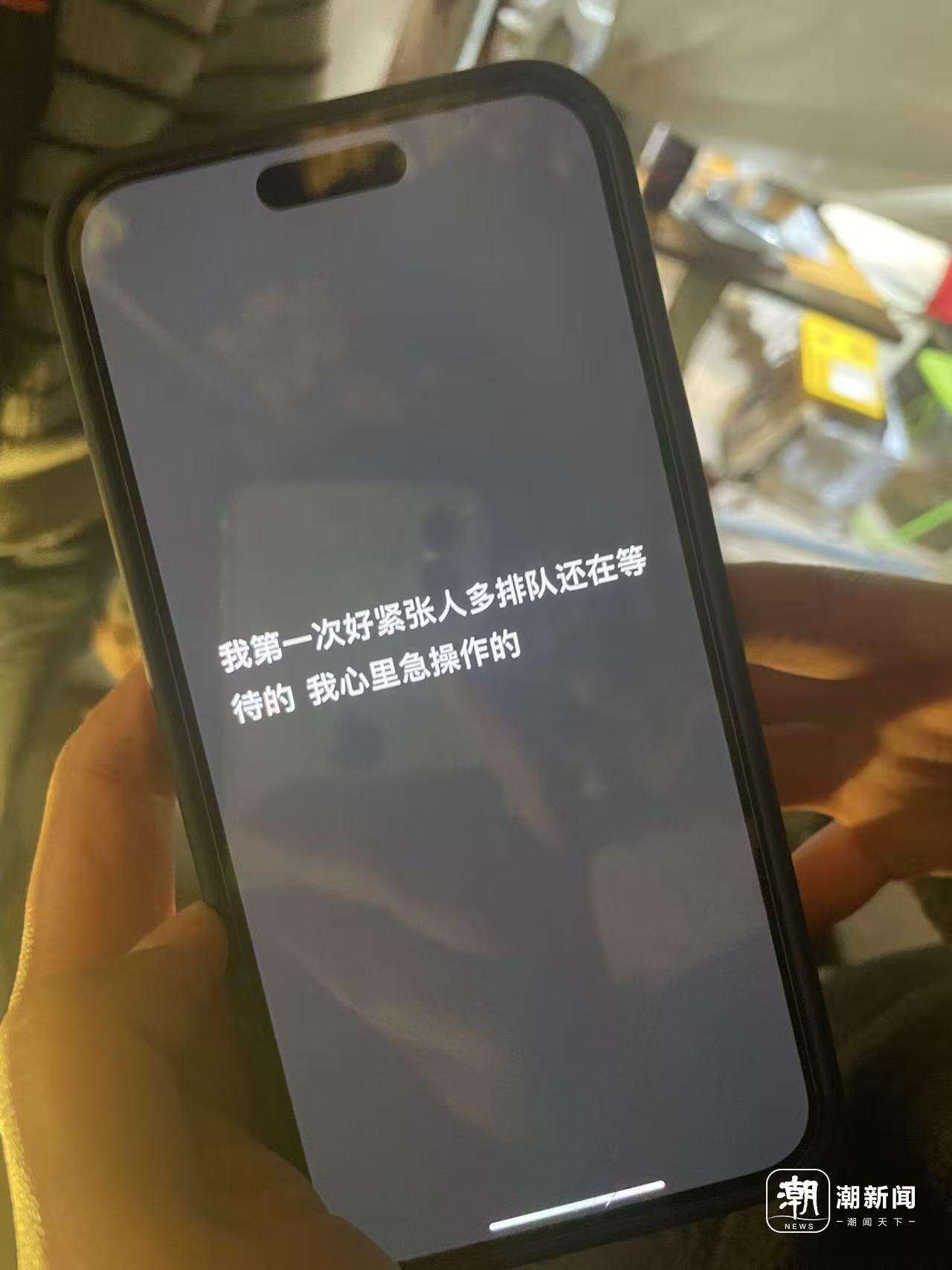 旋即,她摸出手机告诉记者,“我第一次。好紧张。人多,排队还在等待的。我心里急……”