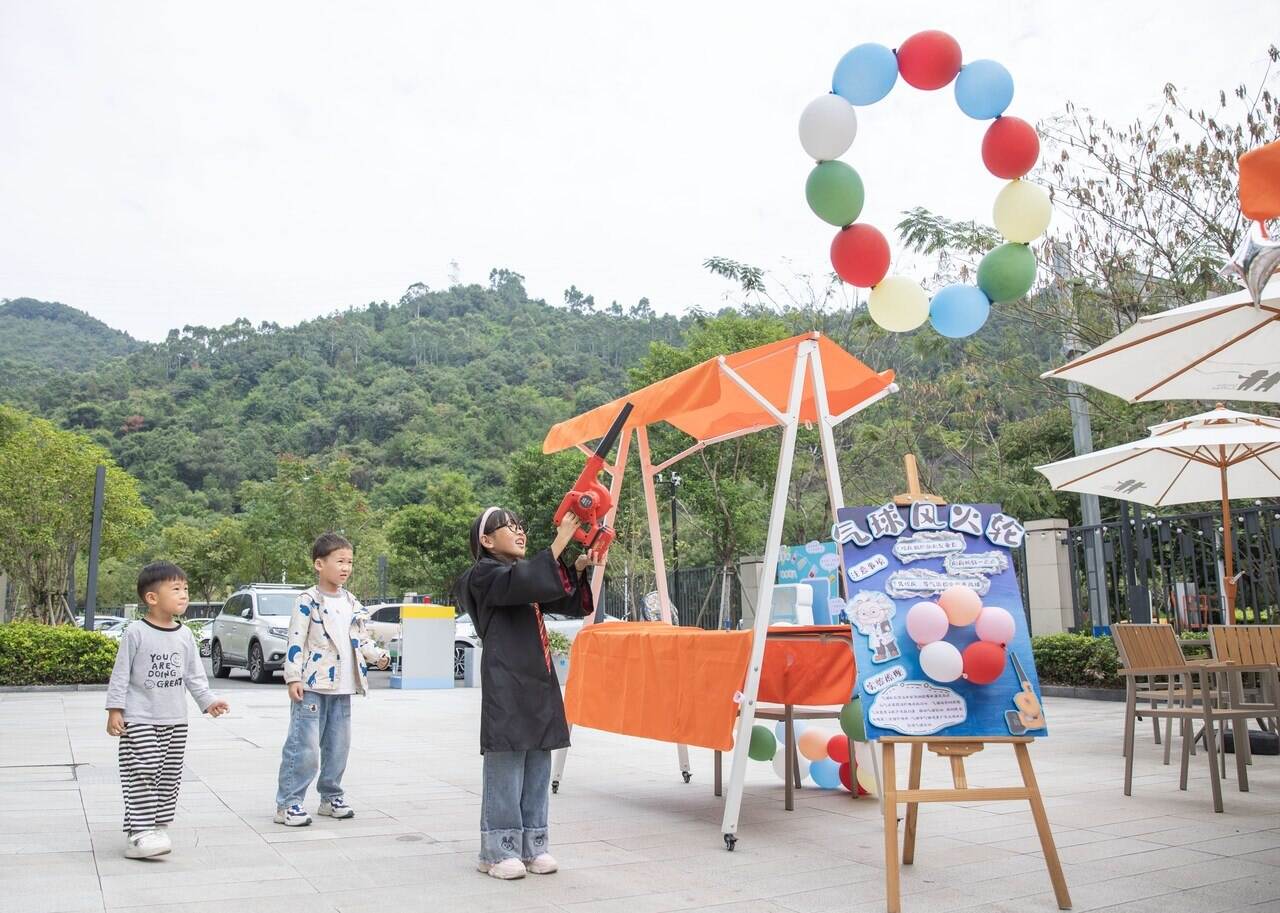 11月1日,温州市瓯海区瓯翔社区前方未来AI社区托管中心的首届科技节现场,孩子们在体验“气球风火轮”科普小实验。