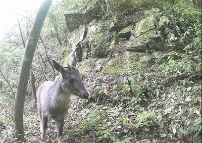 近日,生态环境部南京环境科学研究所的生物多样性调查团队借助红外监测设备,在永嘉成功捕捉到国家二级重点保护野生动物中华斑羚的野外活动画面。