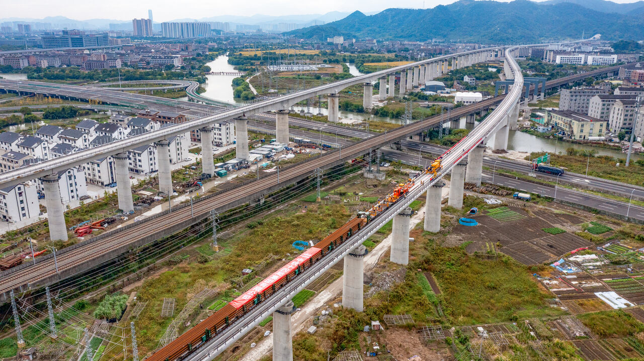 设计时速350公里!杭台高铁温玉段开始铺轨