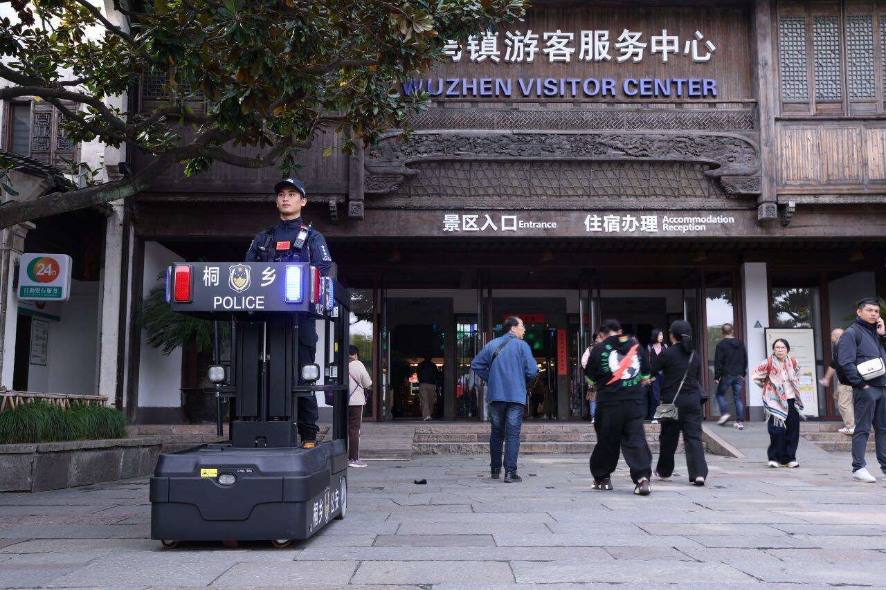 安保的安心,是藏在暗处的温柔守护。西栅景区的多功能瞭望哨下,一位巡逻队员抬起头调试设备,这座3米多高的哨塔能实现360度旋转,“站得高、看得远、看得全,能让游客第一时间找到我们,找到安全感。”巡逻队员姚成说。