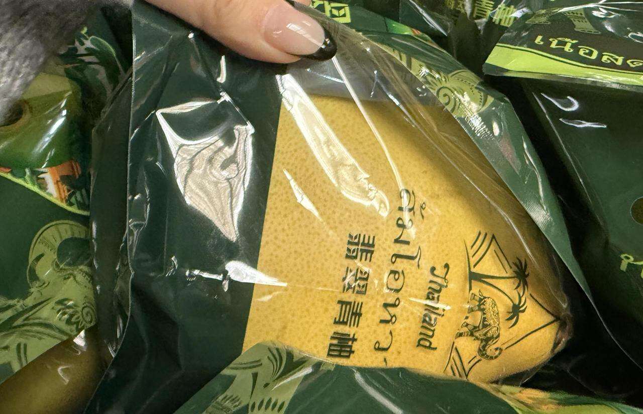 写着泰文的“国产泰柚”。记者 戴佳轶 摄