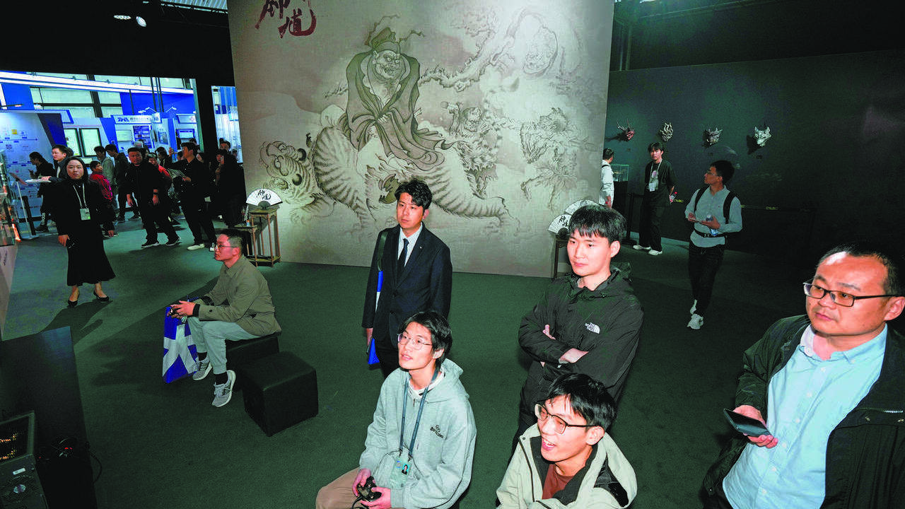 展台前,循环播放的新游戏预告片、整齐排列的折扇等周边产品吸引了大量与会者驻足。视频中,钟馗红髯怒目、形象威猛且细节丰富,与相伴的老虎形成极具视觉冲击力的画面。“《黑神话:悟空》我已经通关3遍,太期待体验新游戏了。”来自巴西的若昂一边在展区自拍,一边向工作人员询问新游戏的制作进度。