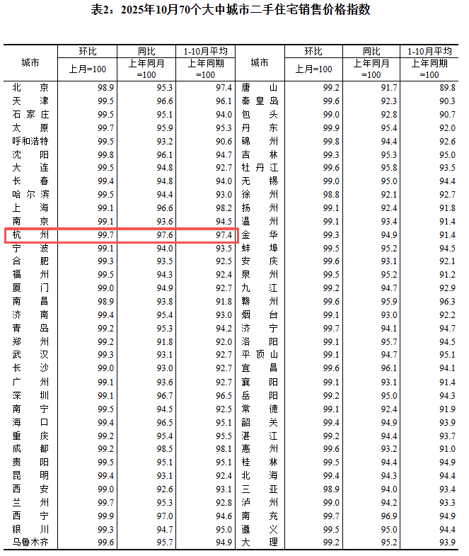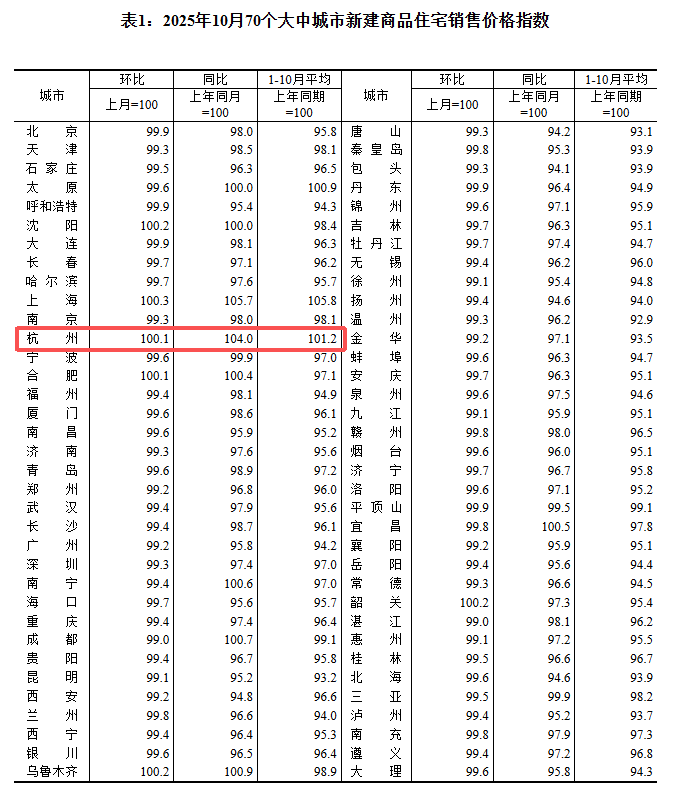 国家统计局10月数据:杭州新房价格三连涨,二手房价格七连跌