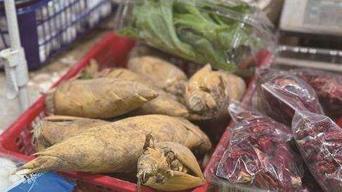 紧接着,记者又拐去了星辉农贸市场,看到菜摊上,新鲜冬笋被摆在了显眼的位置。带壳、去壳的都有,但从外表看,很难判断出是本地冬笋还是外地冬笋。记者随机问了几家,摊主均表示自家冬笋是本地冬笋。