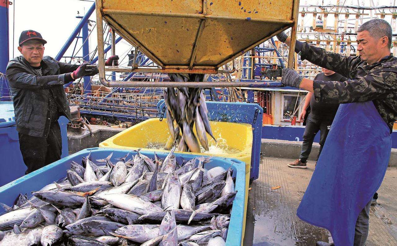 渔业是玉环市经济的重要支柱产业。当地渔民抢抓渔业生产出海捕捞,及时将新鲜海鱼转运上岸,投放市场。
